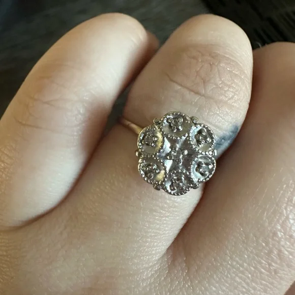 Antique Vintage Bicolor 10kt Gold Diamond Cluster Ring