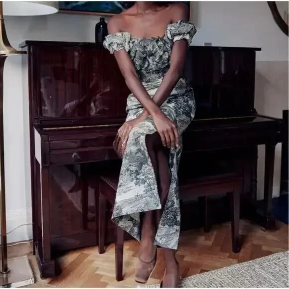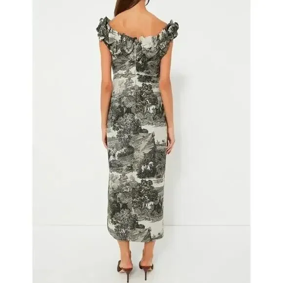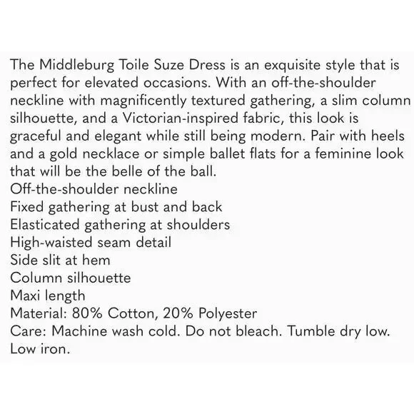 -Waist- 29" -Bust- 32" -Length- 47" Elevate your wardrobe with the Tuckernuck Middleburg Toile Dress, a stunning piece that embodies a blend of classic elegance and modern charm. The dress features a vibrant painterly print in black and ivory, making it a standout choice for formal occasions, cocktail parties, or as a sophisticated wedding guest outfit. With its round neckline and sleeveless design, this maxi ball gown dress flatters a regular size S frame effortlessly.Crafted from a comfortable mix of cotton and cotton blend fabrics, the dress ensures ease of movement and breathability, ideal for year-round wear. Detailed with a ruffle accent and a seamless zip closure, this woven garment is a testament to Tuckernuck´s commitment to quality and style. Whether you´re channeling a retro vibe or a more contemporary look, this dress promises to be a versatile addition to your collection.