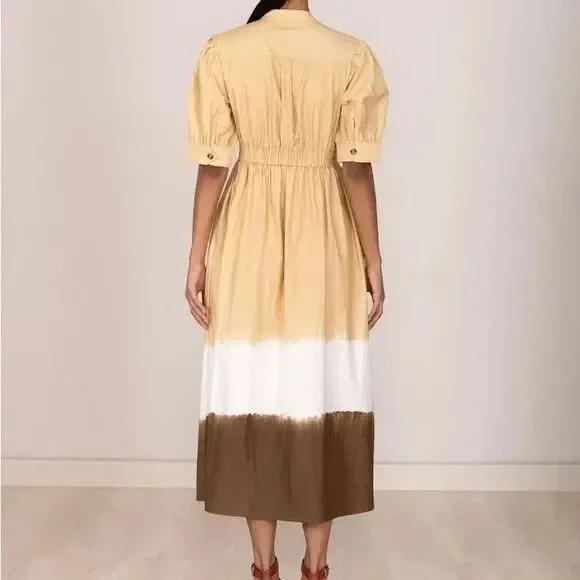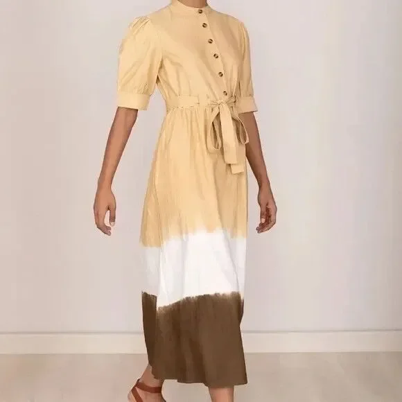 BANJANAN NEW Tuckernuck Daffodil Dress Hand Dip Dye Sand X Large Cotton