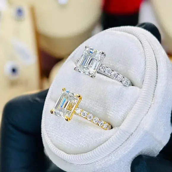 3.42ctw Emerald Cut Moissanite Pavé Engagement Ring