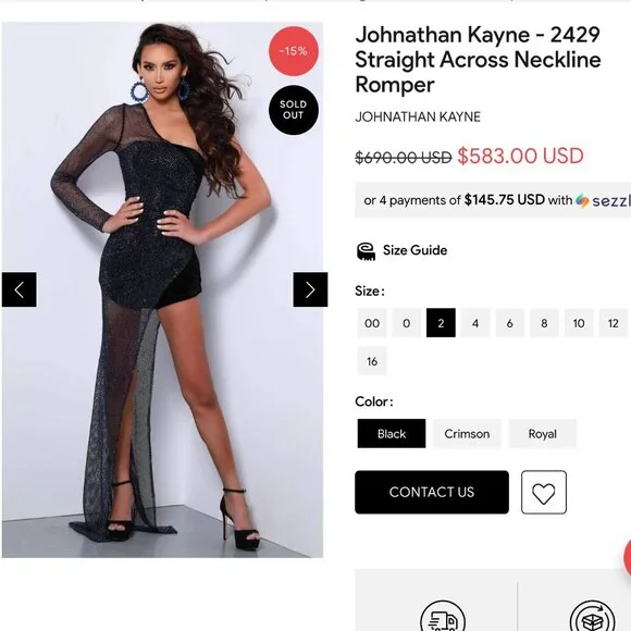 Stand out in every occasion with this daring creation by Jonathan Kayne 2429. The crystal mesh drape sequence willsurely sparkle like diamonds under the lights in the event. This velvet romper is stunning, the fittedbodice showcases astrapless straight across neckline and the mid-opened back will add more glamour to it. With ruching on the hip this little romper will flatter a variety of body types! Jonathan Kayne creates a fun and exciting look.Tags: Stretch Velvet, Stretch Lining, Crystal Mesh, Pageant, Prom, Formal, Sherri Hill, Jovani, Fitted, Sequined, One Shoulder, Mid-Open Back, Back Zipper Closure