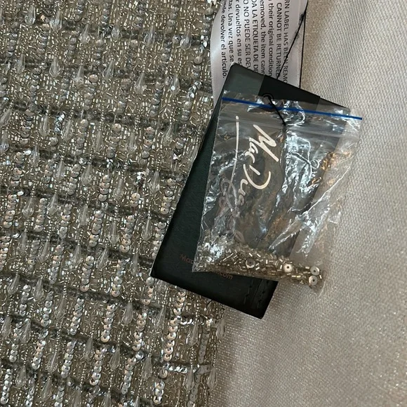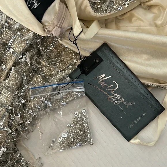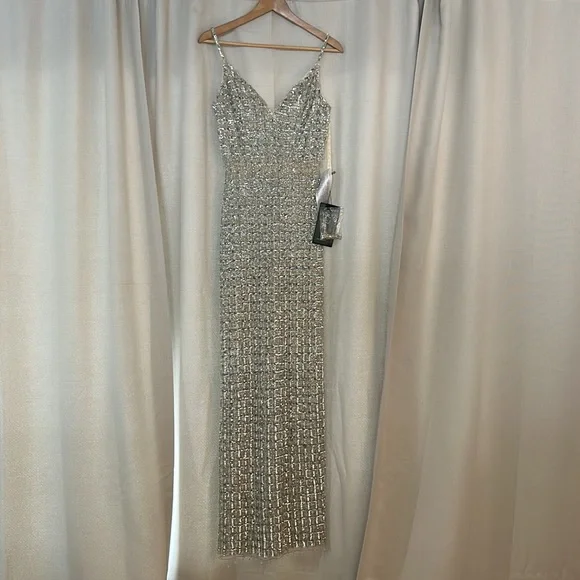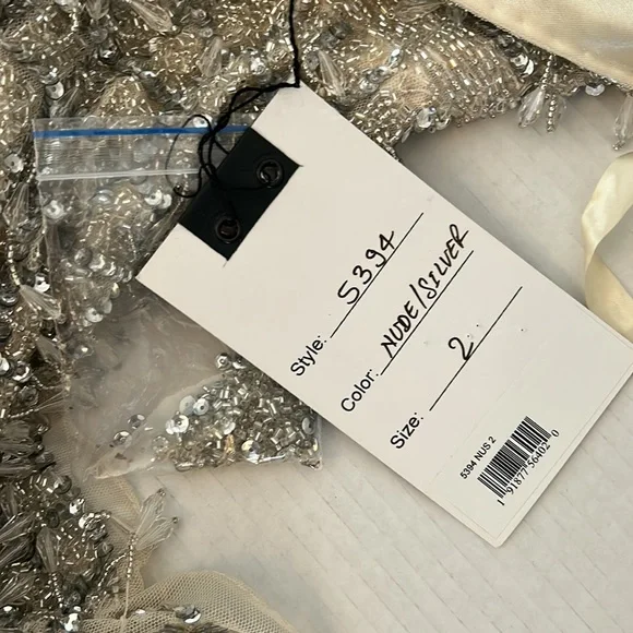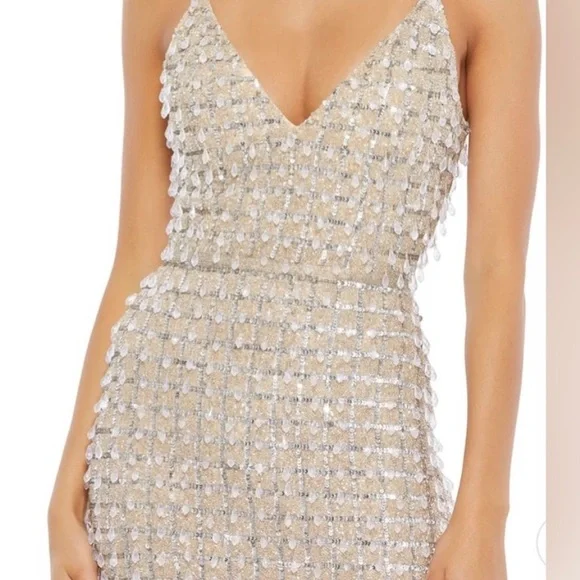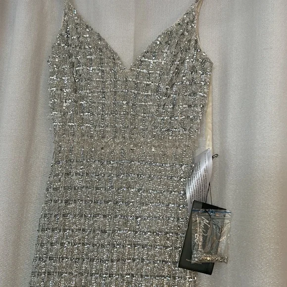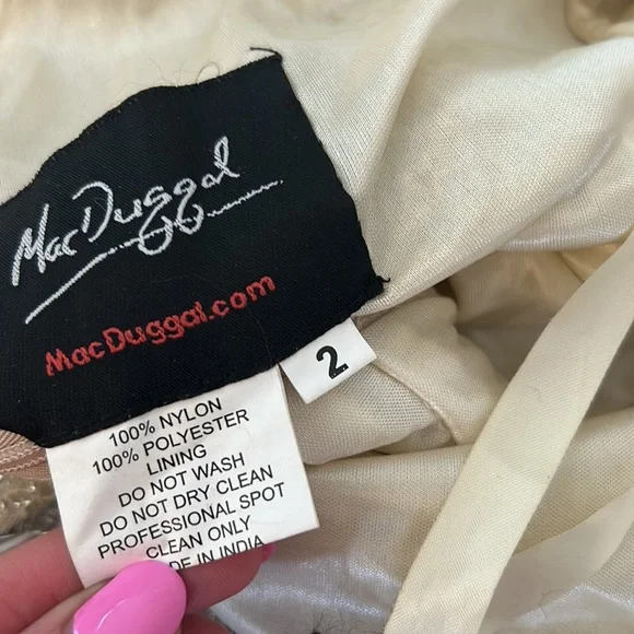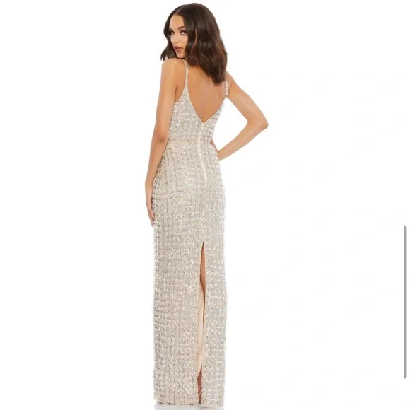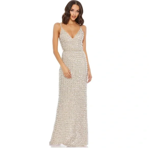 Size 2Pit to pit flat across 17”Waist across flat 12” Hip across flat 17”•• Item is new with manufacture´s tag still attached ••Hand-beaded geometric gown adorned with crystal drop accents through the dress. The full-length skirt features a center back slit, and the spaghetti straps are lined with metallic sequins.Mac DuggalFully LinedBack Zipper100% PolyesterBack SlitFull LengthV-NeckStyle #5394Please note due to the intricate nature of the gown, it´s possible there could be a slight flaw (loose string, missing bead, etc.) After close review, I´m not finding anything major.