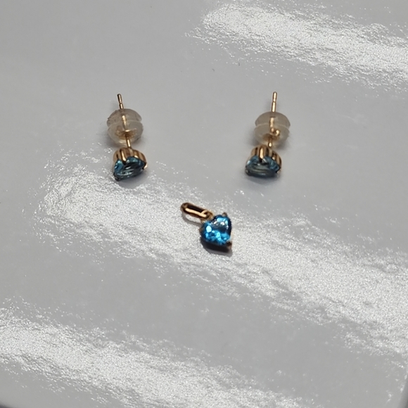 Natural Blue Topaz Earrings Pendant SET 18k Yellow Gold HEART Stud K18 JAPANNEW without tagsWith CertificateK18 Yellow Gold Au750 750 18K Japan GoldHalf set , earrings and pendant...