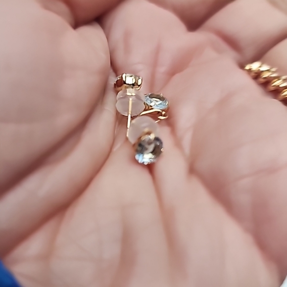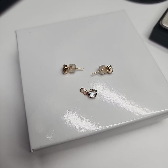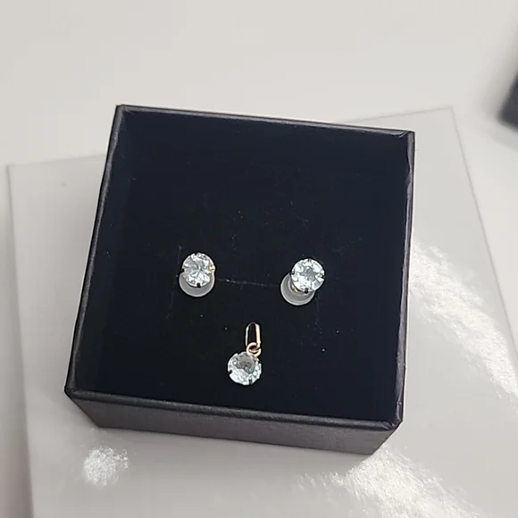 18K Aquamarine Earrings Pendant SET 18k Yellow Gold Round Stud K18 Gemstone