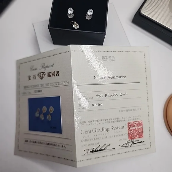 Natural Aquamarine Earrings Pendant SET 18k Yellow Gold Round Stud K18 JAPANNEW without tagsWith CertificateK18 Yellow Gold Au750 750 18KJapan GoldHalf set , earrings and pendantLightweight smallPawnable
