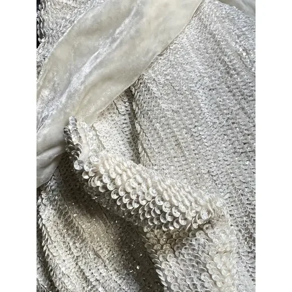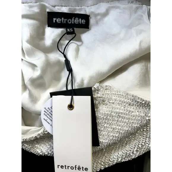 Retrofete Ella Sequin Dress XS One Shoulder Belted Asymmetric Mini Cocktail NWT $525Condition: New with tags.DETAILS:Make an entrance in the Ella dress. This one shoulder sequin mini is a modern rendition of ‘80s disco glam. The style features a velvet tie belt, which allows you to draw in the waist and adjust the silhouette’s length. The dress has an invisible side zip closure.18" pit to pit38" waist40" hips30" length120122-GG-8-KR-MS