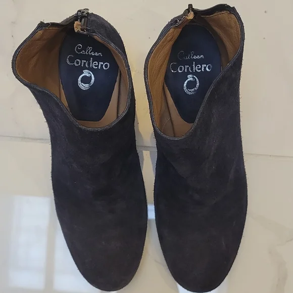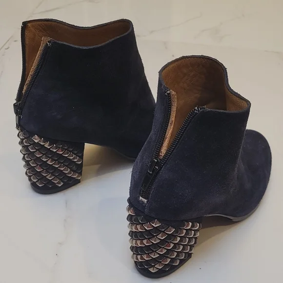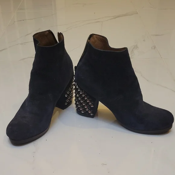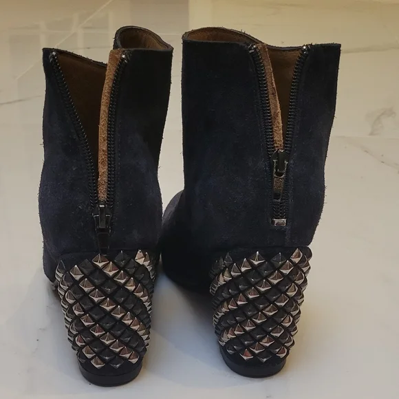 Calleen CorderoBlue Suede Studded Heel Back Zip Ankle Bootwith a .25" front platform back zipper studded heel rigid rubber sole4 inch shaft3 inch heelSize:8retail price:$678.00**Browse through my closet to make the most your 5 lb. shipping allowance; bundle multiple items and maximize your savings.**