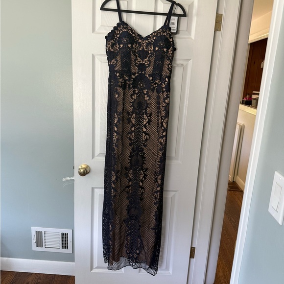 NWT Designer Catherine Deane Navy/Almond Lace Elegant Evening Gown/Maxi Dress