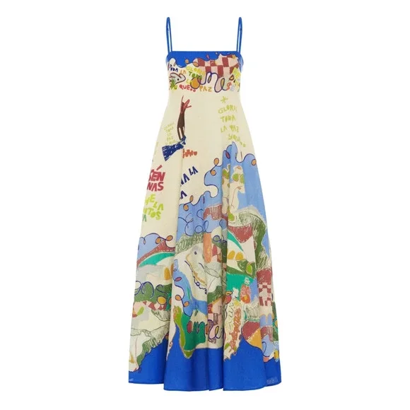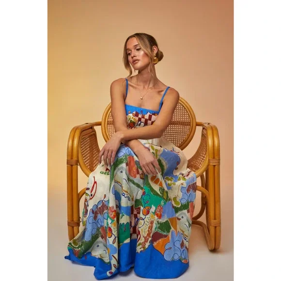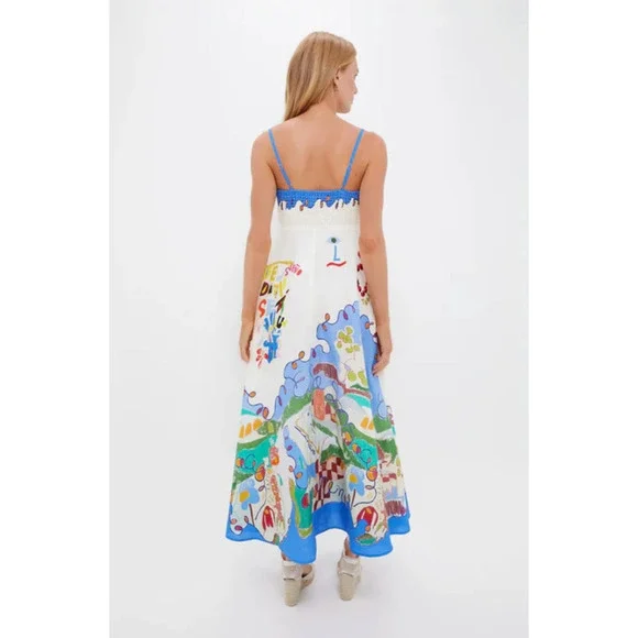 Alemais Nadia Sundress New without hang tags, pristine condition Size US 8 = AU 12Listed in US sizing Artwork in collaboration with Nadia HernandezMidi sundress silhouetteSquare neckAdjustable strapsShirred panel at back bodiceInvisible zip at sideInseam pocketsComposition: 100% European Flax Linen