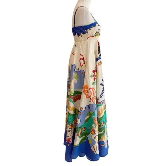 Alemais Nadia Sundress New without hang tags, pristine condition Size US 8 = AU 12Listed in US sizing Artwork in collaboration with Nadia HernandezMidi sundress silhouetteSquare...