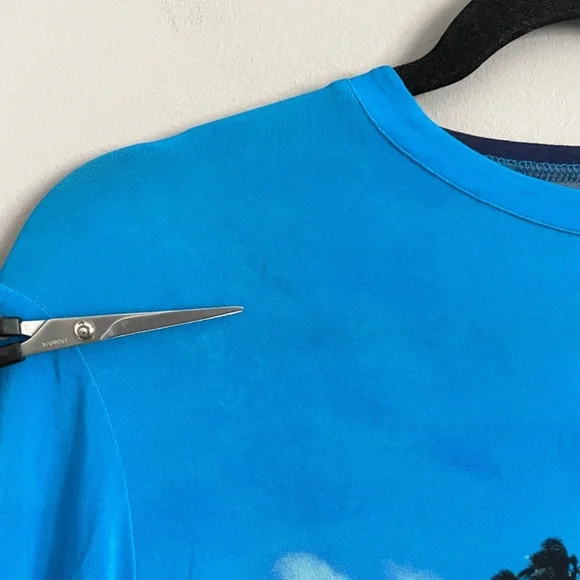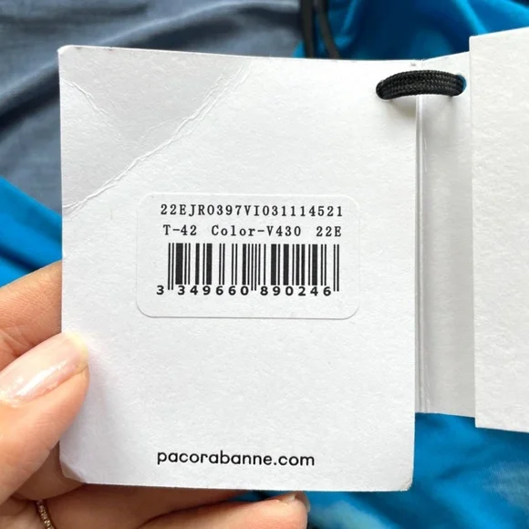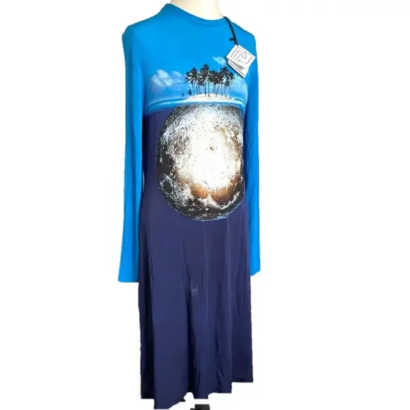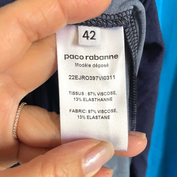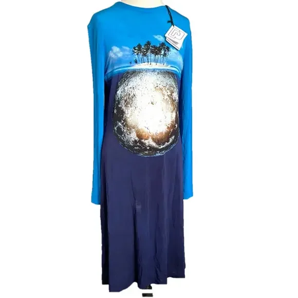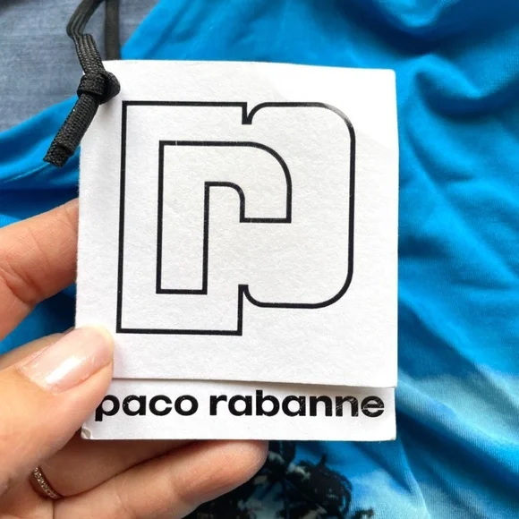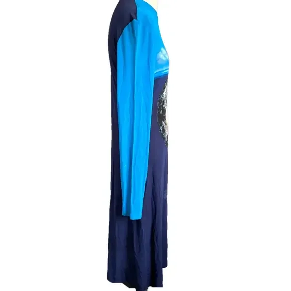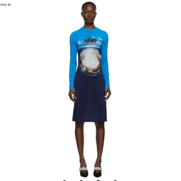 Long sleeve stretch viscose jersey mid-length dress featuring graphic pattern in multicolor at front. Logo patch in multicolor at back. Part of the Paco Rabanne x Kimura Tsunehisa collaboration - 2021.87% viscose, 13% elastane - stretchy, slinky material.Supplier color: Instant WorldMarked sz42, fits like M/L, here are the approx measurements:Shoulders - 18"Chest - 19"Length - 44" (midi length)Condition:There are 2 marks/stains, 1 - near upper shoulder / 1 - at thigh, BOTH pictured.Not super noticeable, may come off with stain treatment, but no guarantees.Original tags reattached, dress may have been worn once, then put away.