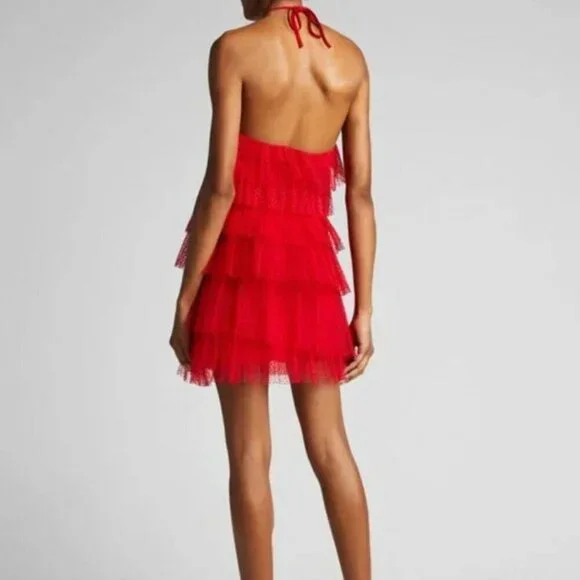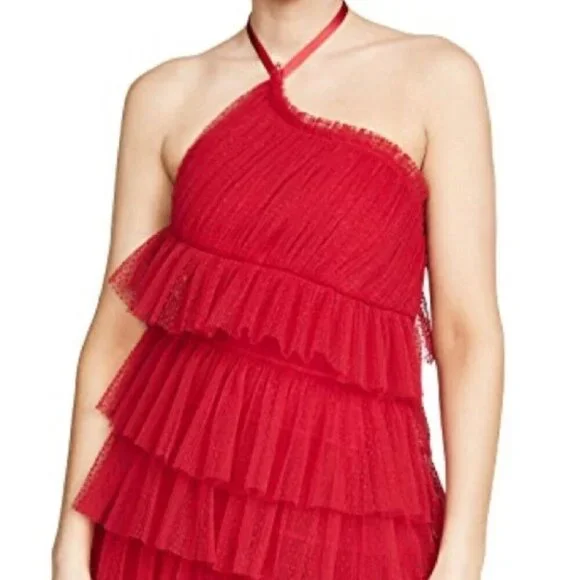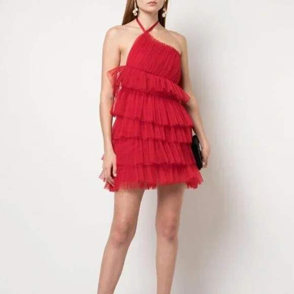 Alexis Raina Tiered Tulle Halter Mini Dress Cherry Red Size MBrand new with tagsAsymmetric halter neckMini-dress cut with tiered rufflesHidden zip at sideFabric: Lightweight...