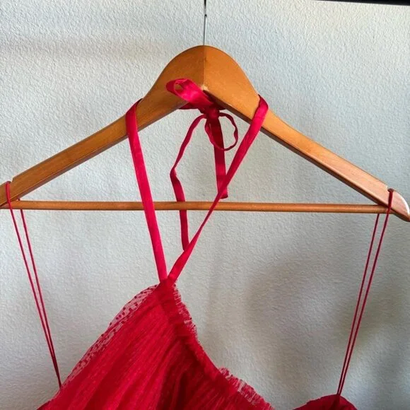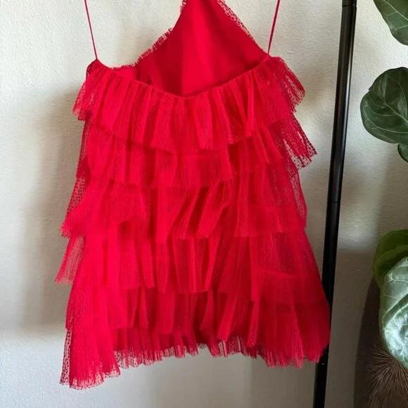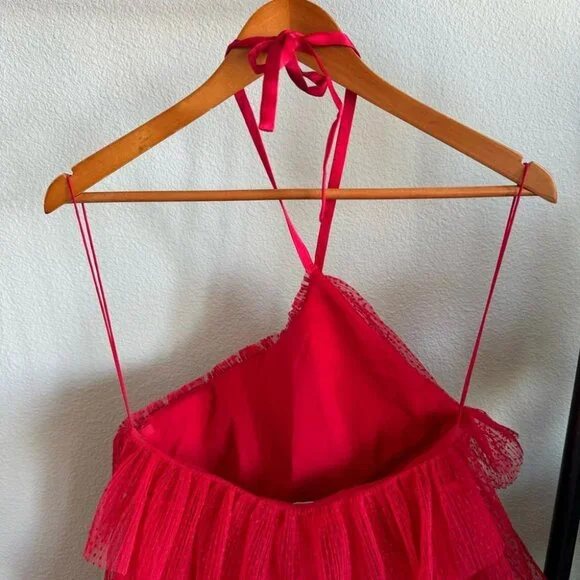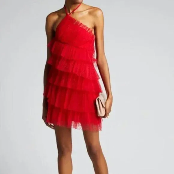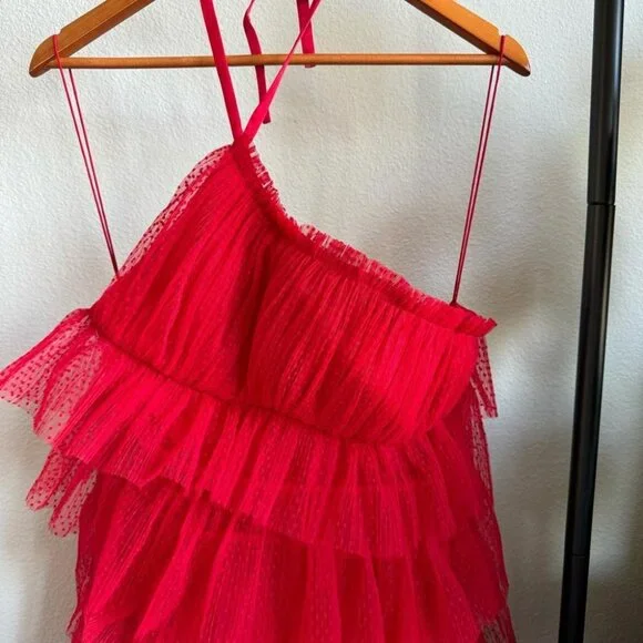 Alexis Raina Tiered Tulle Halter Mini Dress Cherry Red Size M NWT