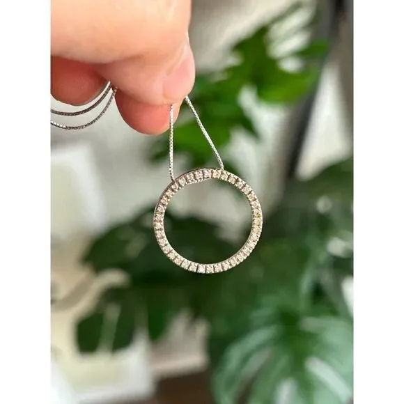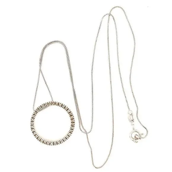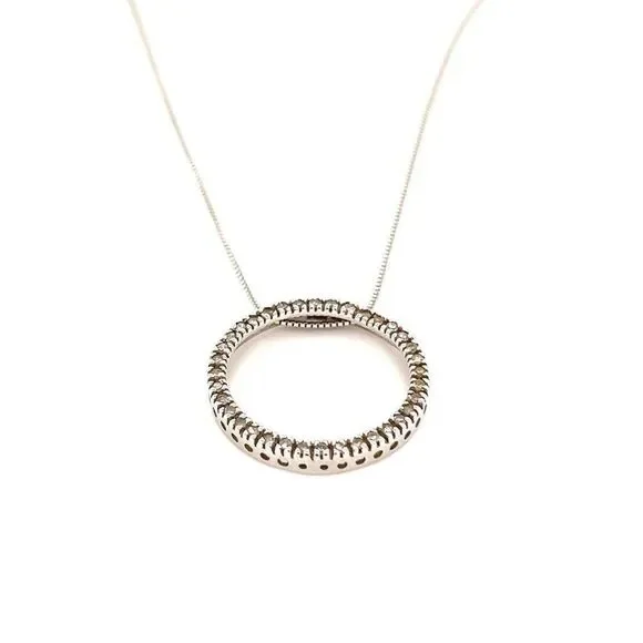 This stunning gold circle pendant necklace adds a touch of elegance to any outfit. Perfect for any occasion.