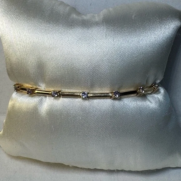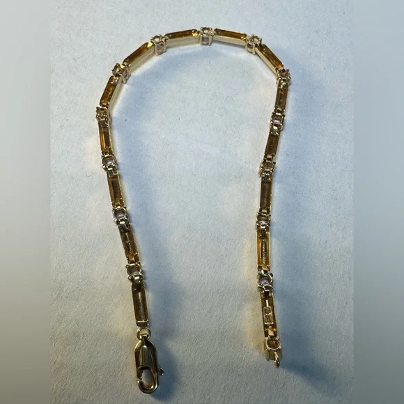 10KT Yellow Gold Round Cut Blue Spinel Bar Link Tennis Bracelet7.25” long including clasp x 3.10mm wide x 3.91mm thick14 round cut blue spinel @ approx. 2.70mm approx. 1.40 carat combinedIn excellent condition.Please inspect each pic for those are important part of item description.