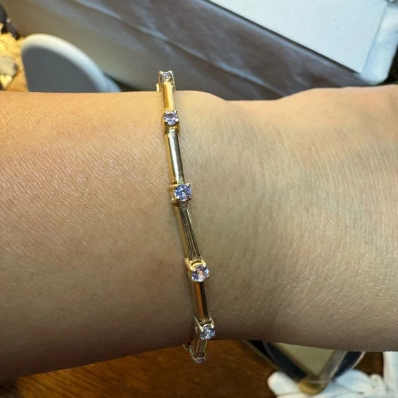 10KT Yellow Gold Blue Spinel Bar Link Bracelet