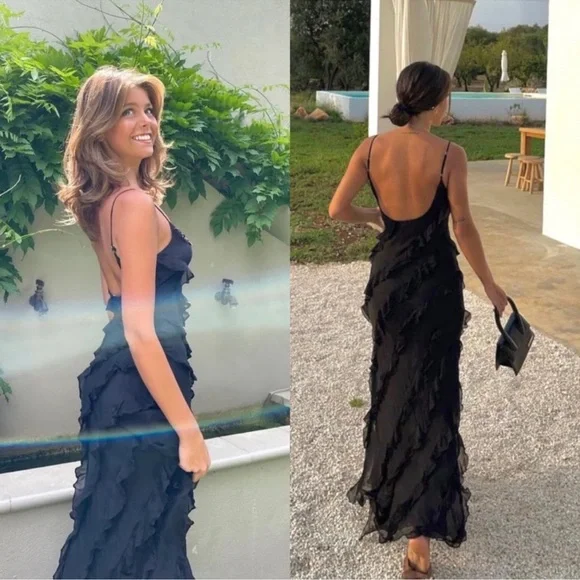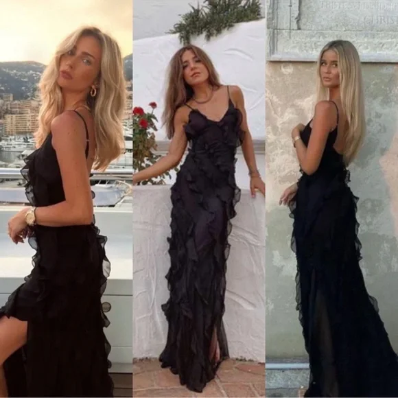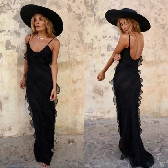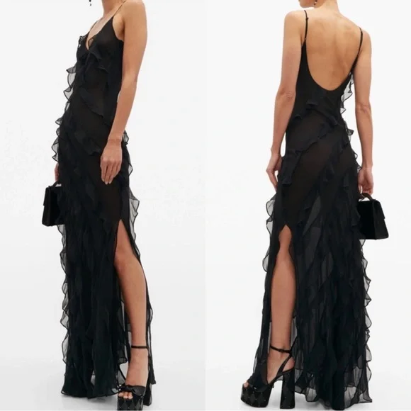 Rat and Boa Selena black ruffle maxi dressNEW! New without tags!Size: XXLRomantic black silk ruffle gown Add simple jewellery and this stand out gown will do the rest to make you look and feel amazing! This dress is see through.Made from 100% silk chiffon