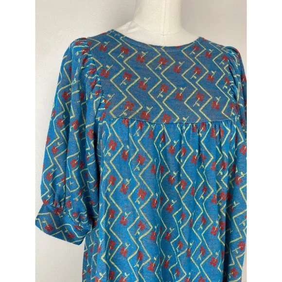 Description - Adorable mod mini dress made from a floral knit. It has big balloon sleeves. It buttons up the back. DetailsBrand - Alvin Duskin (label is missing but the RN on the care label matches)Content - 100% AcrylicSize - Labeled 11, best for a modern XS/SShoulders - 11.5"Chest - 18" pit to pit Sleeves - 15" from shoulder seamWaist - approx 25" acrossHips - approx 28.5" acrossLength - 29.5"Condition - I don´t see any flaws except for the missing label