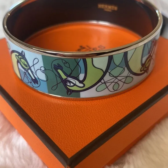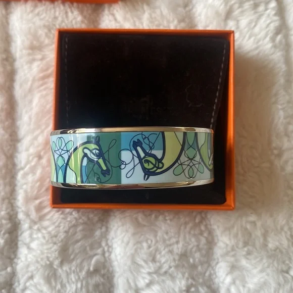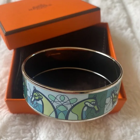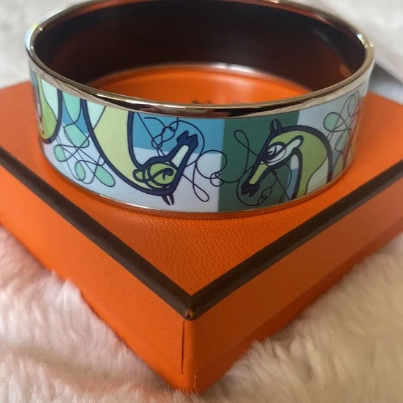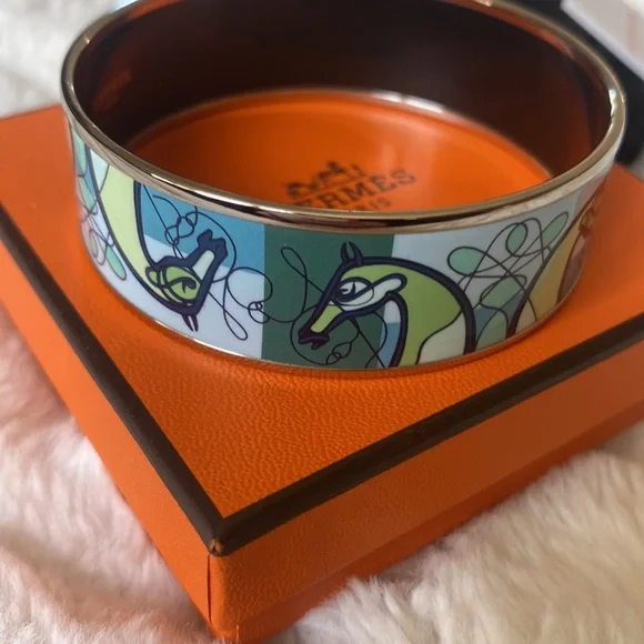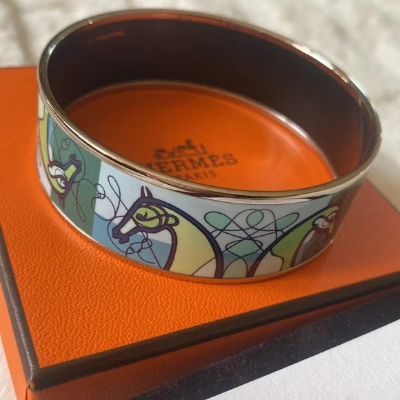 Authentic Hermès Enamel Palladium Coup De Fouet Horse Bracelet-like new