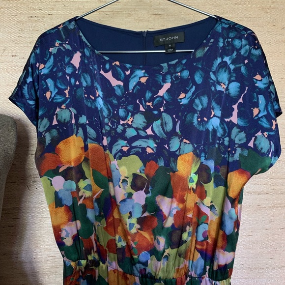 St. John Silk Autumn Blooms Blouson Dress - 12 ~~~~~~~~~~~~~~~~~~~~~~~~~~~~~~~~~~~~~~~~~~~~~~~ DESCRIPTION / CONDITION: Gently Owned / EUC / No Issues / 95% Silk, 5%Spandex Shell / 94% Silk, 6% Spandex Lining / Hip Pockets / Back Zip Closure / Elastic WaistbandMEASUREMENTS: Waist: 15” Armpit to Armpit: 22” Length: 42.5” Thank you for checking out my closet; let´s get you styled! SuperCaliFraGiLiCious® D640