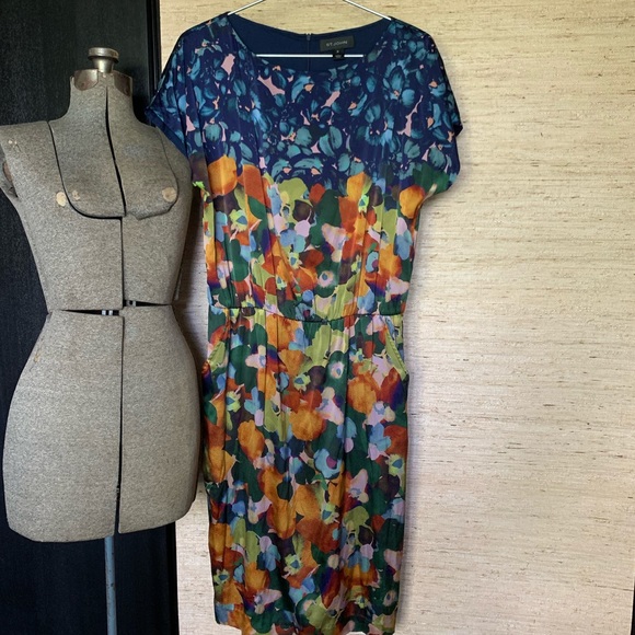 St. John Silk Autumn Blooms Blouson Dress - 12 ~~~~~~~~~~~~~~~~~~~~~~~~~~~~~~~~~~~~~~~~~~~~~~~ DESCRIPTION / CONDITION: Gently Owned / EUC / No Issues / 95% Silk, 5%Spandex Shell...