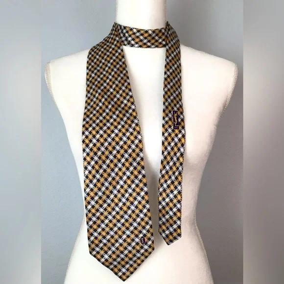 Yves Saint Laurent YSL Logo Silk Hand Made Tie
