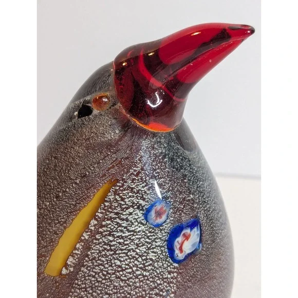 Murano Glass Art Bird - Red, Blue, Silver Toucan
