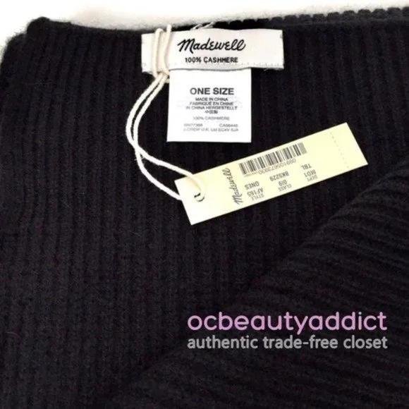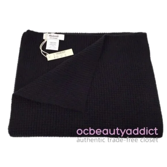 Super soft classic scarf in luxe 100 percent cashmere by Madewell, featuring a stylish waffle-print design. Make it a set with the matching beanie, also available in my closet!- New with tag in package - Color: Black- Men/Women/Unisex- Measures: 64"L x 13 1/4"W- Composition: 100% Cashmere- Hand wash
