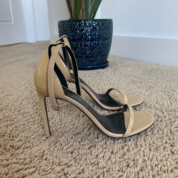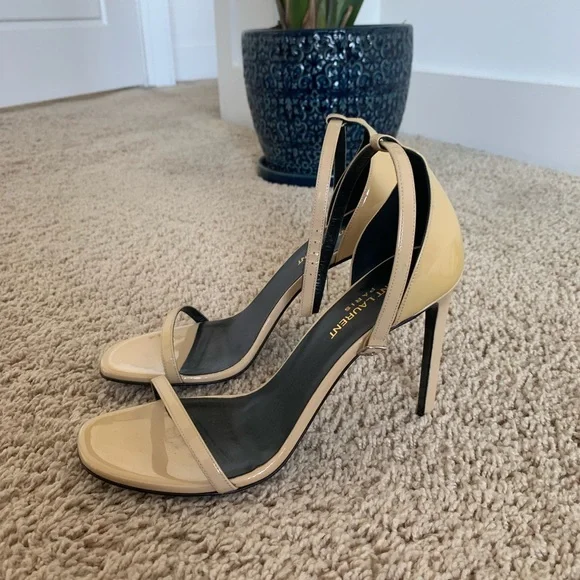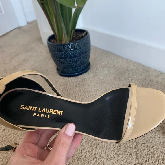 SAINT LAURENT Jane Heel Sandal Nude Size 38.5