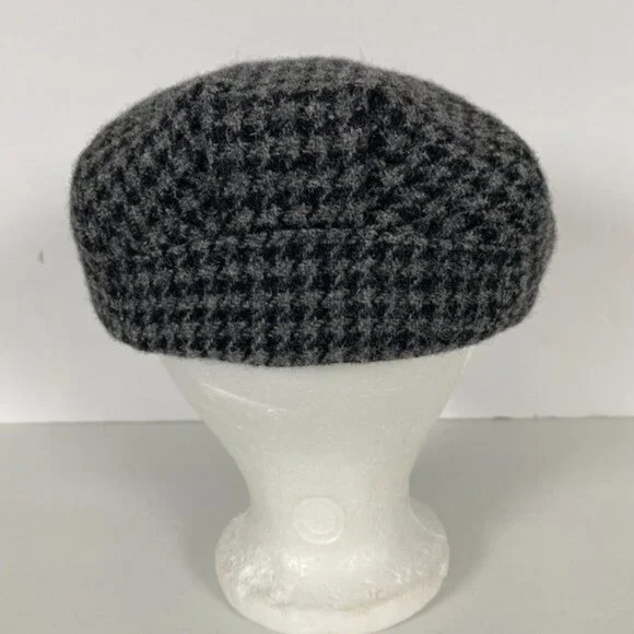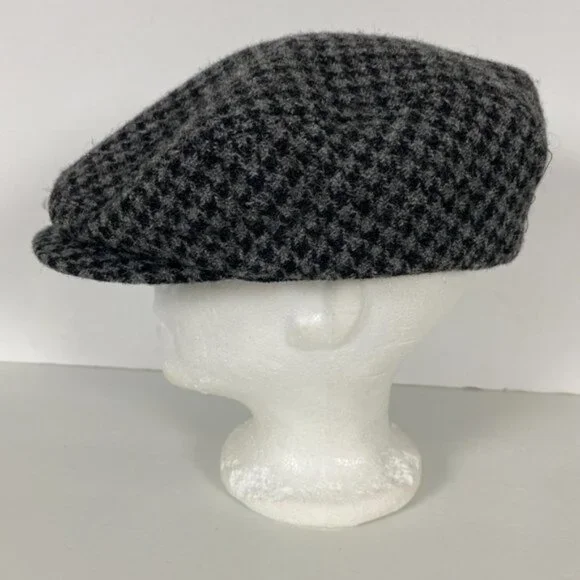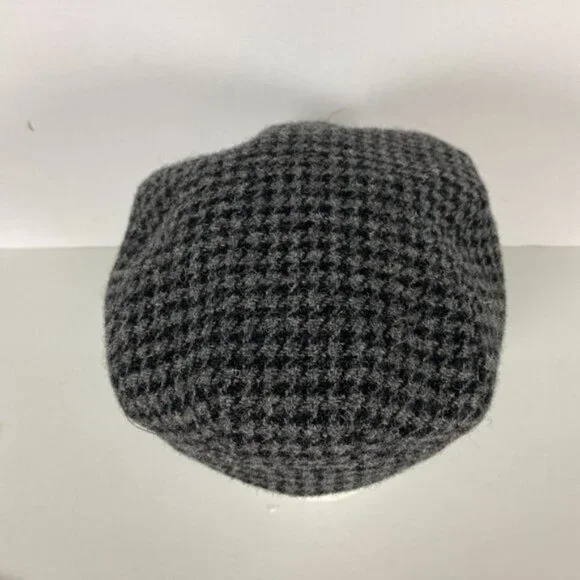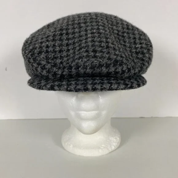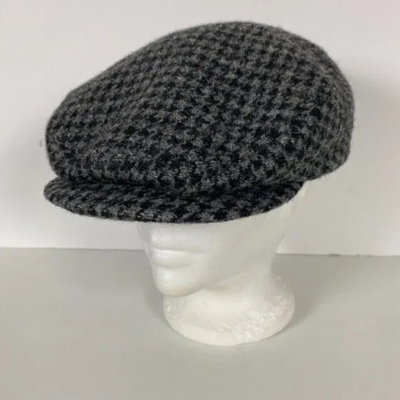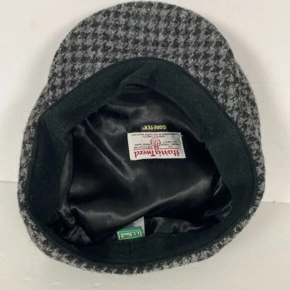 LL Bean Harris Tweed Wool Flat Cap Cabbie Hat Houndstooth Gray