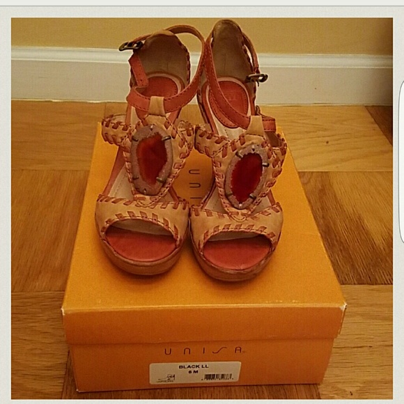 Frye Pepper Agate Stone (Indian Red Veg Tan)Wedge Sandals. Limited editions . Veg tan leather upper.Features natural agate stone slices that reveal beautiful crystals. Contrast...