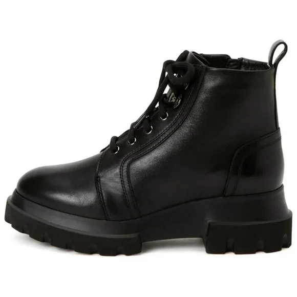 FLOOR MODEL AND TRIED ON EXCELLENTCONDITION- PLEASE SEE PICTURES!!About The Brand: Aquatalia. Sophisticated Styles To Weather It All.Kacy Leather Hiker Boot In Black Leather With Weatherproof DesignInner Side Zip-Up ClosureLightly Padded Leather InsoleRubber Lug Sole2.16In Heel1.37In Platform4.53In Shaft5.12In Boot CircumferenceNO SHOE BOX OR BAG