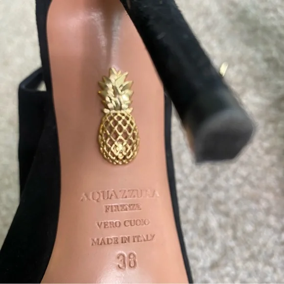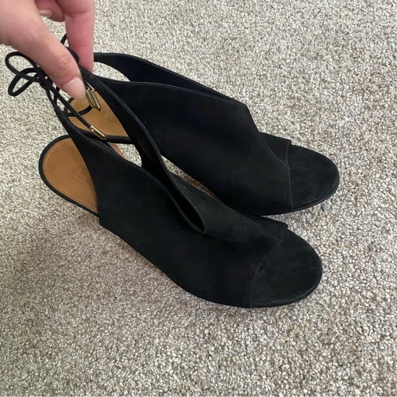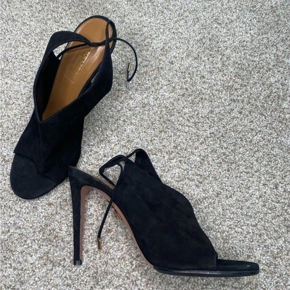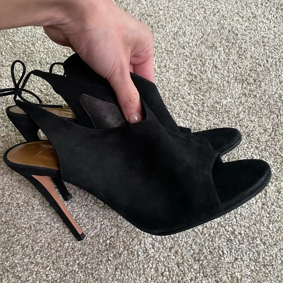 AQUAZZURA SUEDE TIE BACK SUEDE MULE SIZE 38/8**GREAT CONDITION AS PICTURED SUEDE UPPER, SOFT LEATHER INNER - TIEBACK DETAIL AND COMFORTABLE HEEL