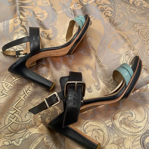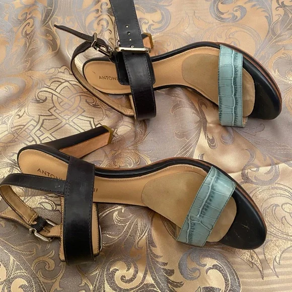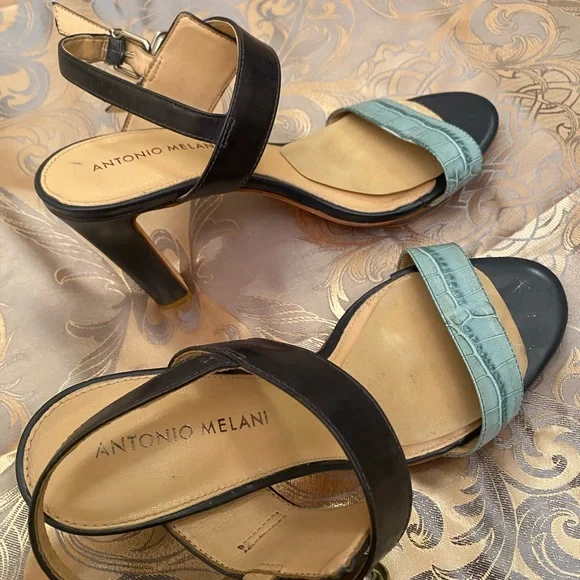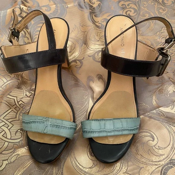 Size 8 Antonio Melanie black & green open toes strap shoe in excellent condition