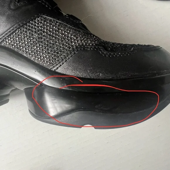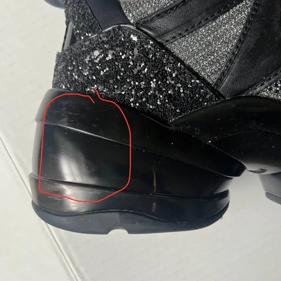 Michael Kors Glitter Olympia Extreme Trainer Sneaker Size 9.A bubble sole puts a fresh spin on our favorite fashion-forward trainer. Designed in a mix of modern textures, the crystal-embellished Olympia Extreme is crafted from a sporty-glam combination of glitter chain-mesh panels with smooth trim. Reach for this pair to amp up just about any look. Materials:Glitter vachetta leather 56% polyester 34% polyethylene terephthalate 10% LurexPolyester blend liningRubber SoleRound toeLace-up fasteningCondition: Good used condition, only worn twice. Has some scuff marks circled in pictures but not noticeable.Michael Kors, Glitter Sneakers, Extreme