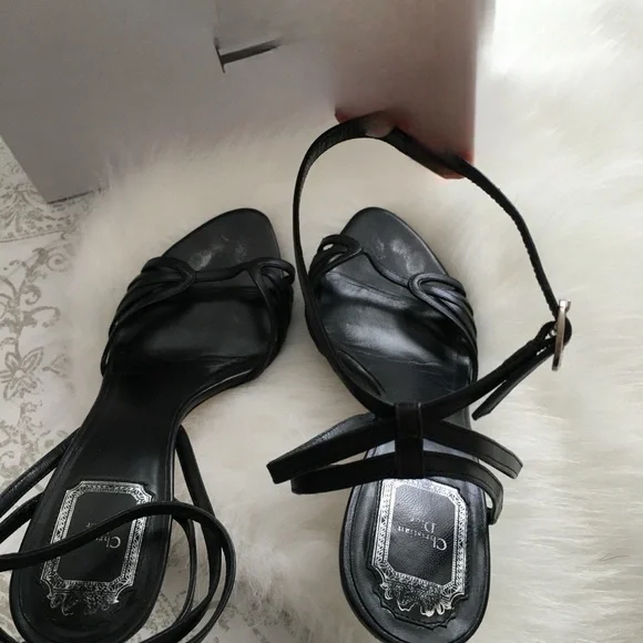 CHRISTIAN DIOR Black Leather Ankle Strap Heels