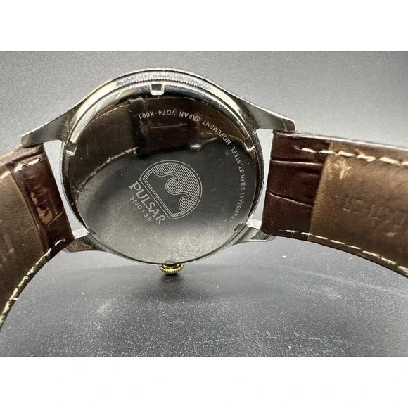 Pulsar by Seiko Men´s 42mm Black Dial Chronograph Leather Watch VD74-X001. This watch is in good condition with minor signs of wear present. Please view photos for a better description.