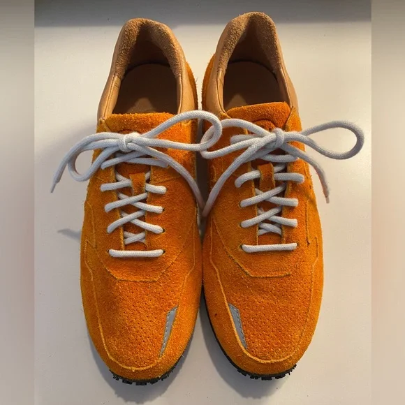 Limited edition orange suede Sonra Proto Pumpkin trainer. Handmade in Germany. Light wear on sole, very good condition overall. #119 of 300 made.