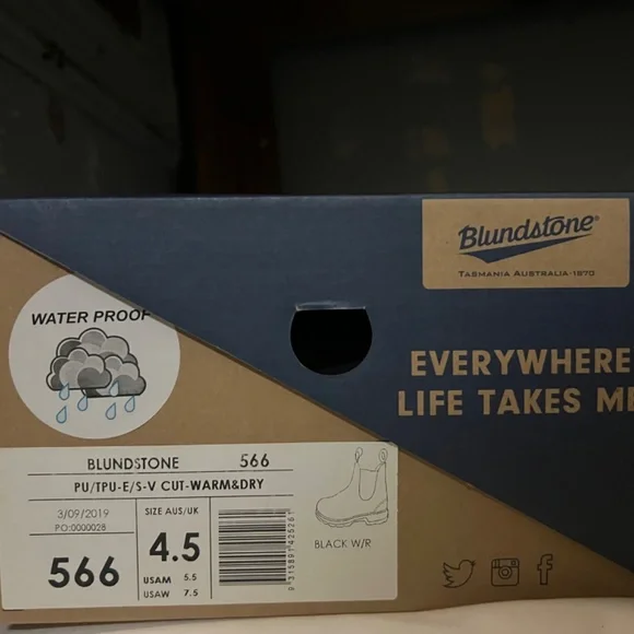 Blundstone waterproof boots. Listed as 4.5 Australian shoe size