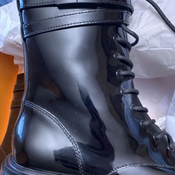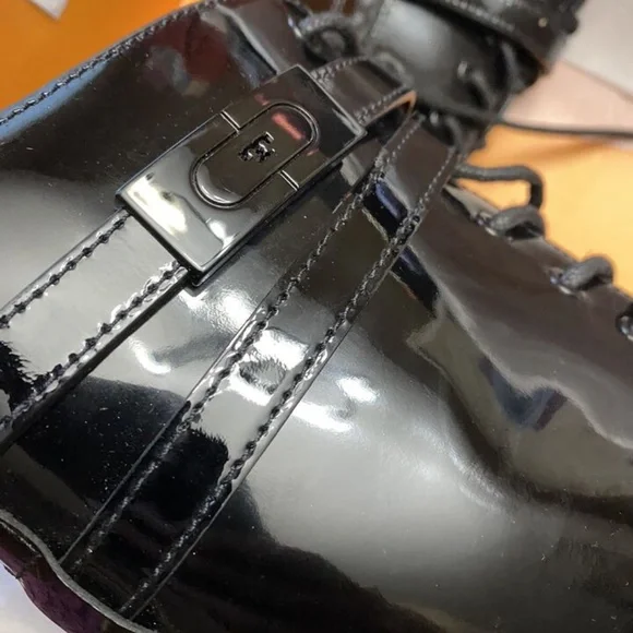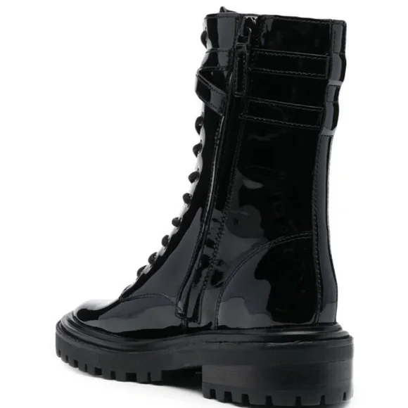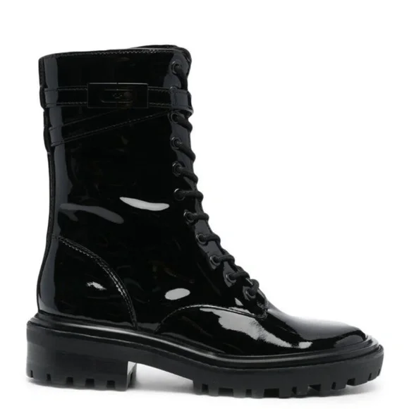 New Tory Burch Combat Boots Lace Up T-Hardware Black Patent Size 9