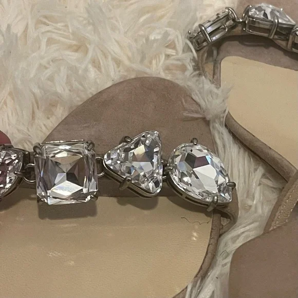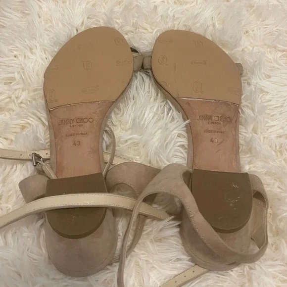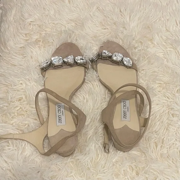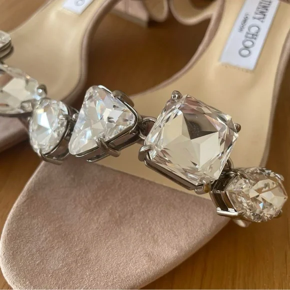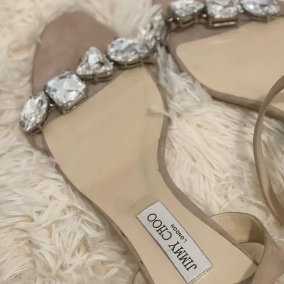 Jimmy Choo large diamond crystals mule sandal heels. Size 43, US 10/11. These are a dusty pink / light beige / neutral shoe / shoe box is NOT included ***The bottom of the shoes were recently taken to a cobbler who re-souled the bottom of the shoes to be taken back to their brand new condition (an additional $120+) I am selling these for a friend of mine and she has repeated said how comfortable these are due to the block heel. Open to offers!