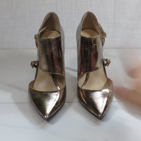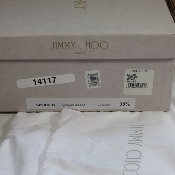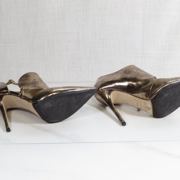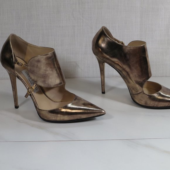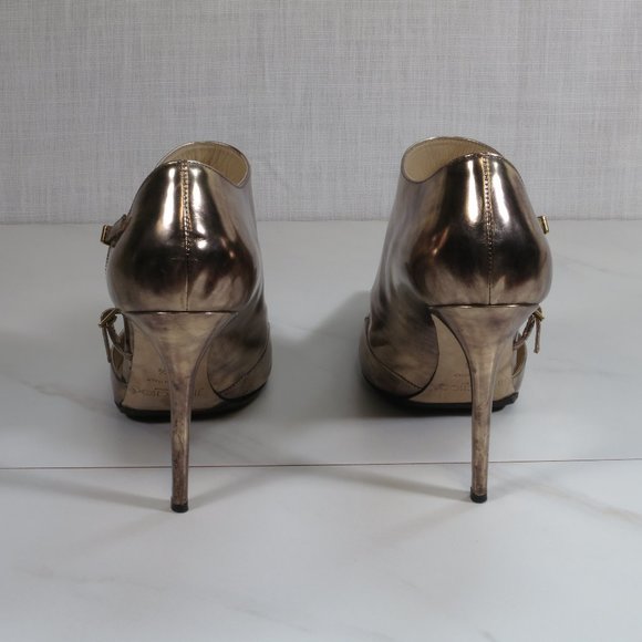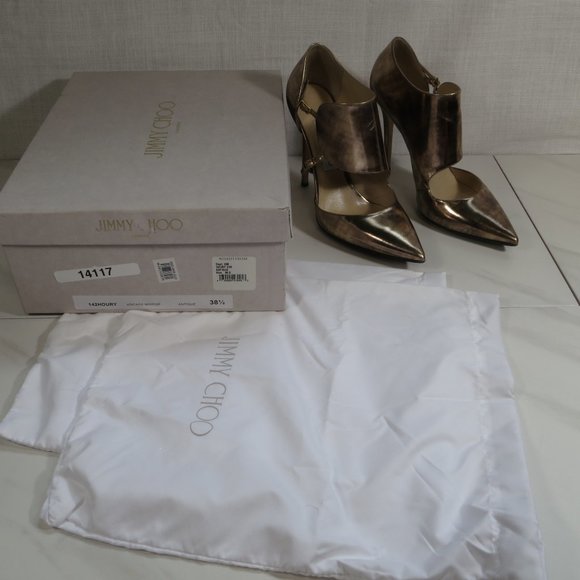 Super funky Jimmy Choo Vintage Mirror Pumps in "antique" color, which looks like a mixture of rose gold and silver.It has a 100mm heel height and non-slip sole protectors.It comes with its original box and dust bag.Great for dressing up your jeans to completing your short party dress.