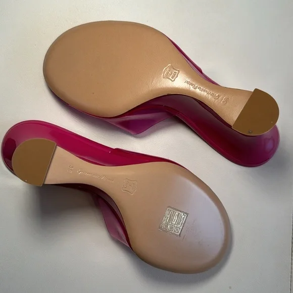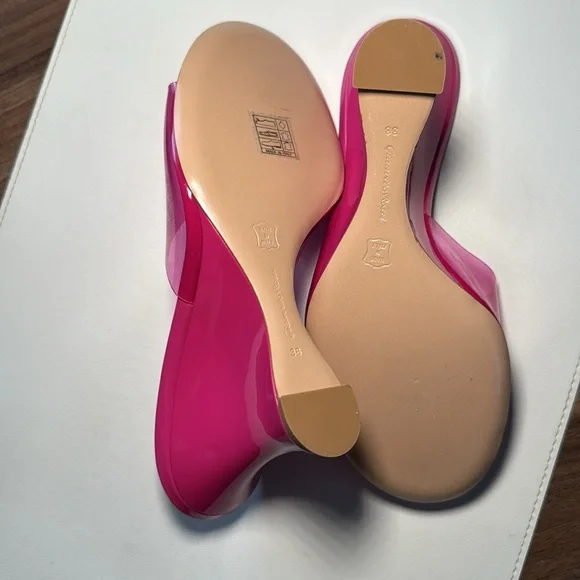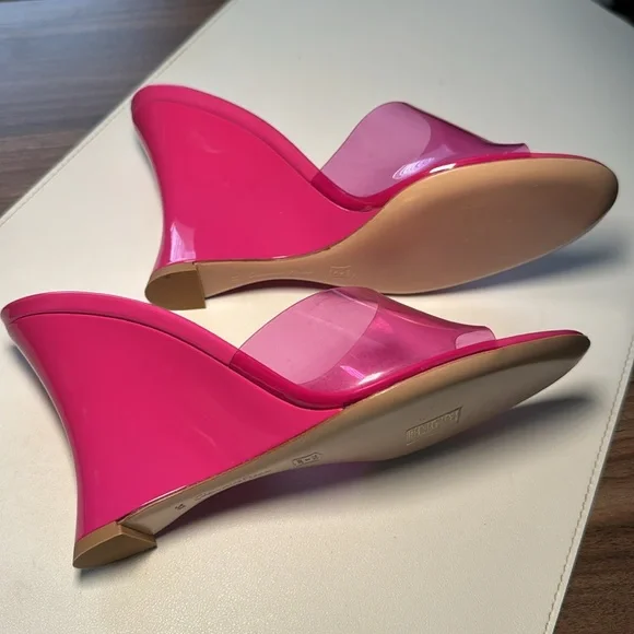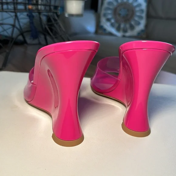 Futura wedge mules in a pink color, size 38 (US size 7.5). The shoes are crafted of translucent PVC with a leather sole. The wedge heel is 3.75" (95mm). Excellent condition, never...