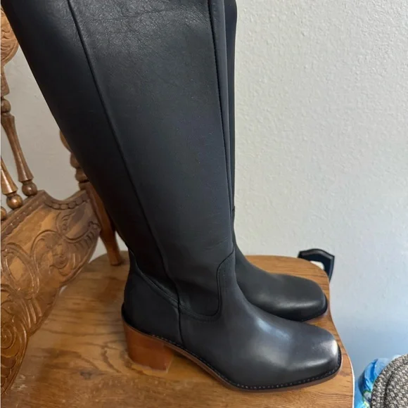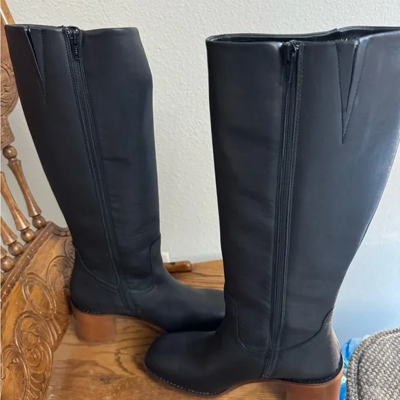 Size 9 Patina Black Boots. Never Worn Knee Height Flat Soles