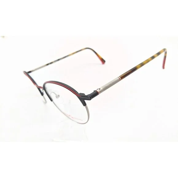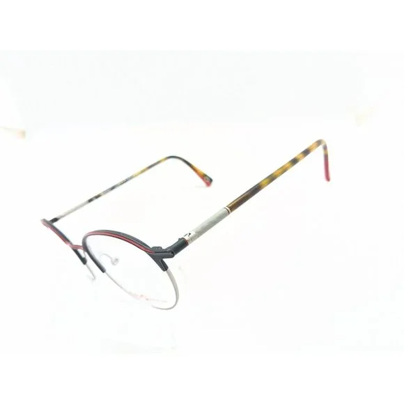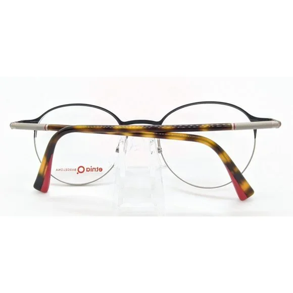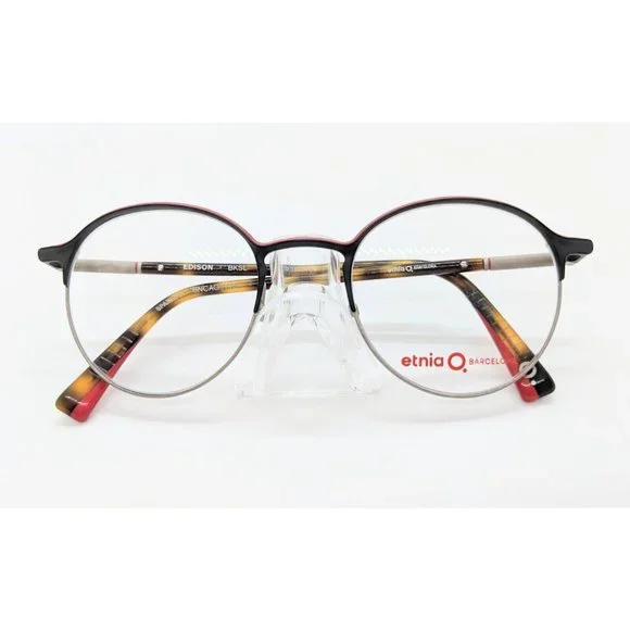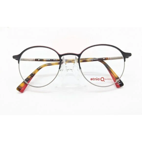 New Etnia Q Barcelona Edison Women´s Eyeglass Frame Retail $400. ColorBlack with red. Has Spring hinges. Measurements are 50-21-146. Vertical 43mm. MR