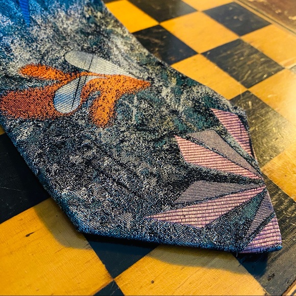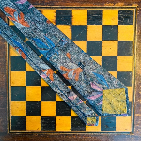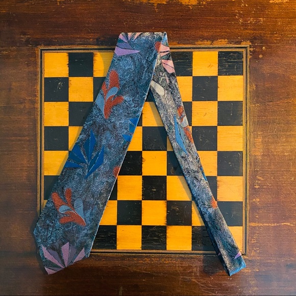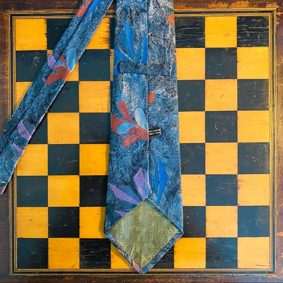 Versace Multicolor Pattern Mens Tie. Green Blue Red Purple Versace Tie. Geometric Floral Pattern. 3.75 x 60 in. 100% Silk. Preowned. Visible Normal Wear and tear. Fair condition. Please see Measurements and Images for more details.