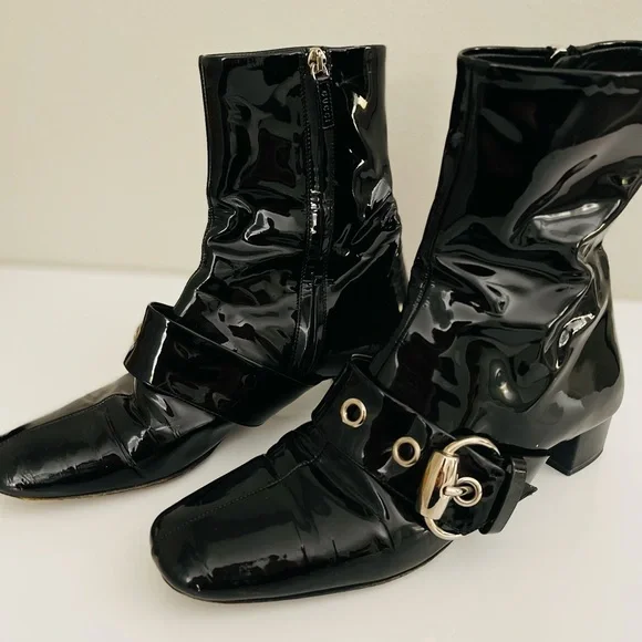 Authentic Short Ankle Boots Black Leather SIZE 7.5