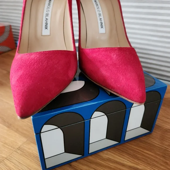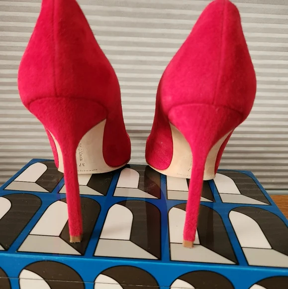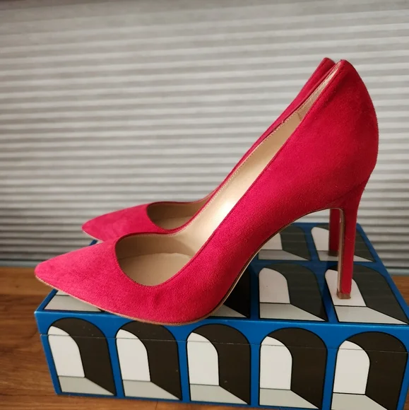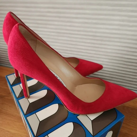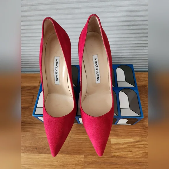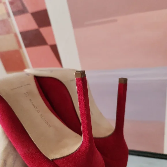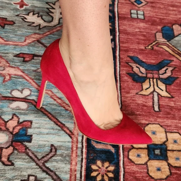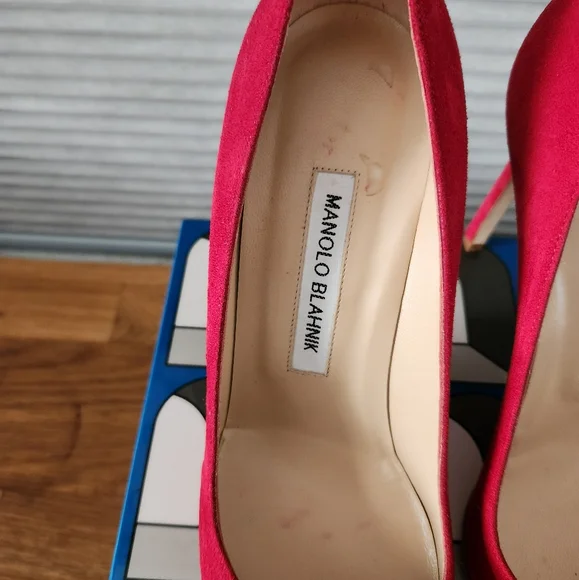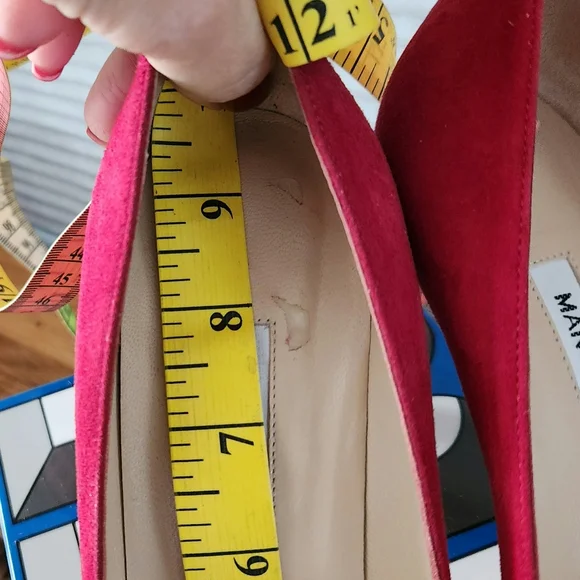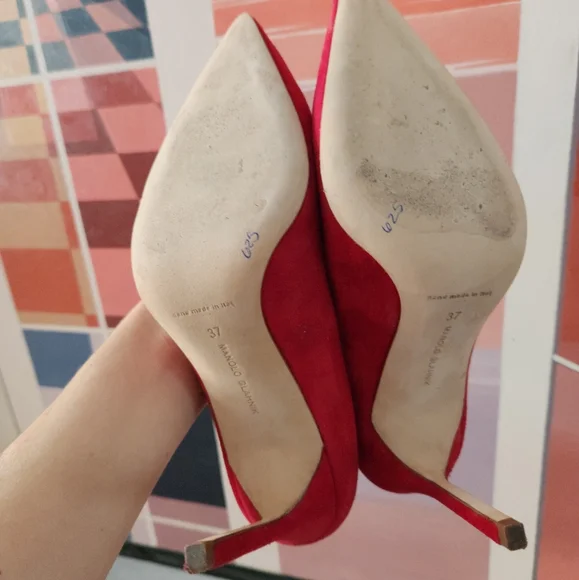 True to size 37 9.6 inch insole wearable length 4 inches heelworn once ver faint reddish marks on the insole . I´m not sure how that got there.shoes are overall in pristine condition sold as is ,no extra accessories the color is more cold undertone red. In the color theory, this is called a blue red , or a cold red :-)