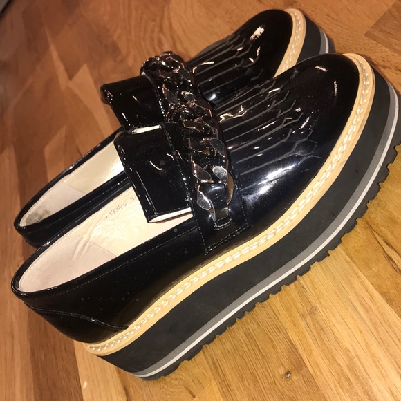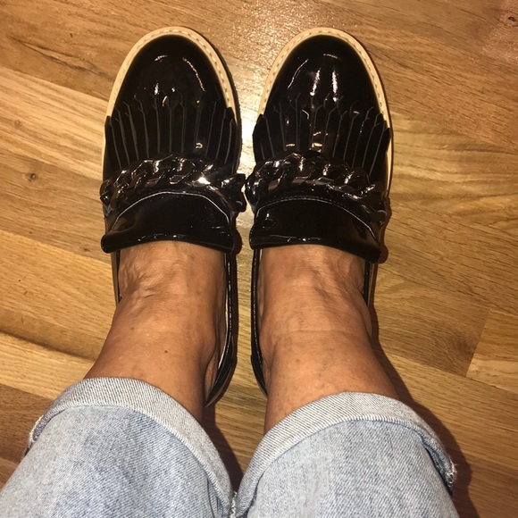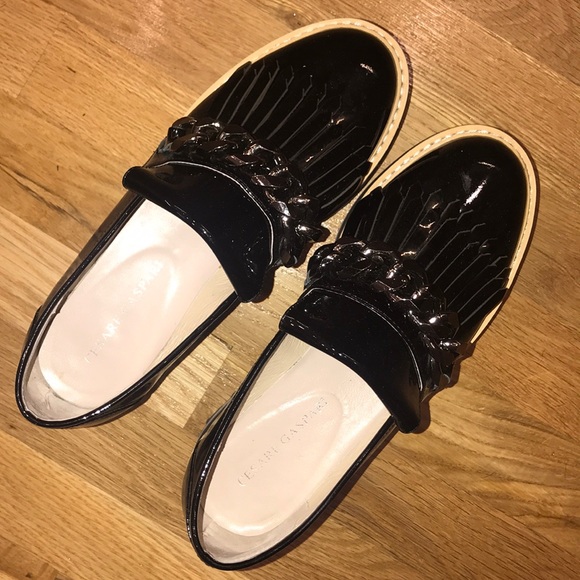 Cesare Gaspari Black Patent Leather chain brogues