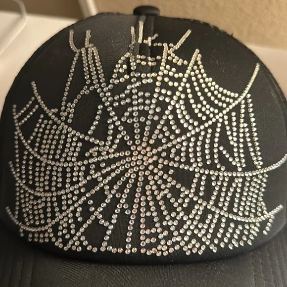 Sp5der Web Rhinestone Trucker Hat Black